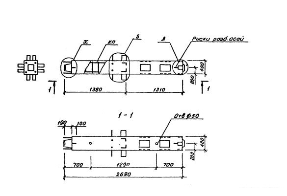 2КН 20.27-1.1-сп    Колонны нижние (Серия 1.020.1-6сп).