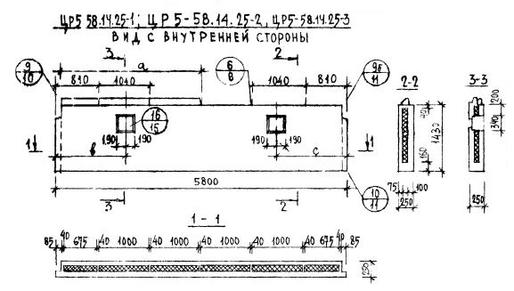 Серия 1.117-9    Панели групп ЦР1, ЦР2, ЦР4, ЦР5  толщиной 250 мм.