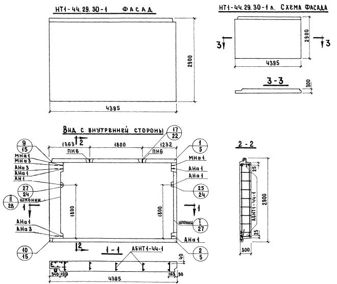 НТ1-44.29.30-1   Наружная стеновая панель торцевая по Серии 1.132-1.