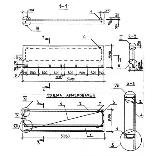 ПРЛ 54.15.3 Плита лоджий ребристая.  Панели перекрытия лоджий по серии 1.137.1-6.